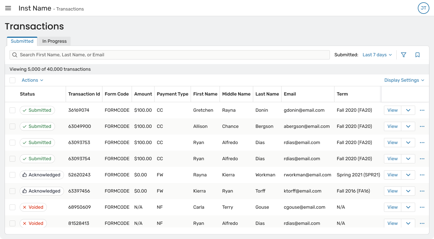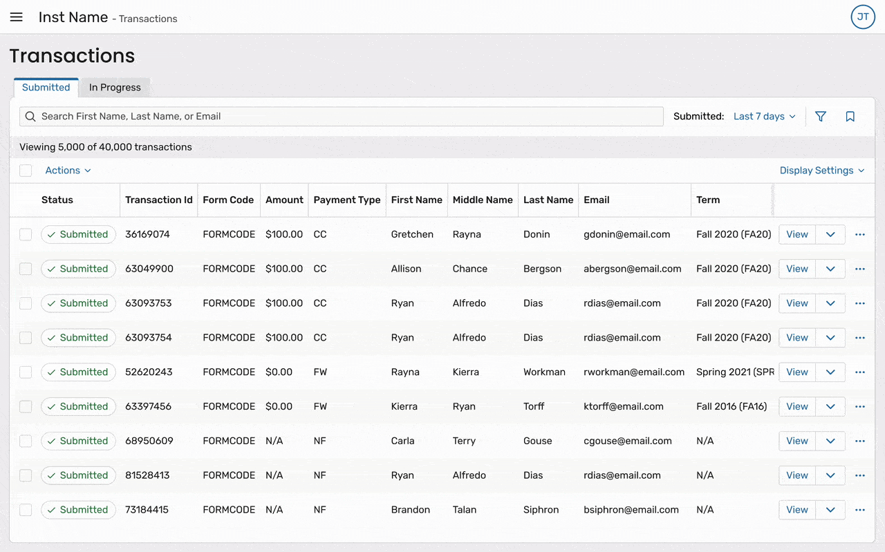 Problem: Users need to repeatedly search transaction data using the same criteria – often across multiple sessions or workflows (e.g., “Submitted applications for Program X this week” or “In-progress transactions awaiting payment”). Without saved views, users were forced to rebuild complex filters each time, which was both time-consuming and error-prone.
