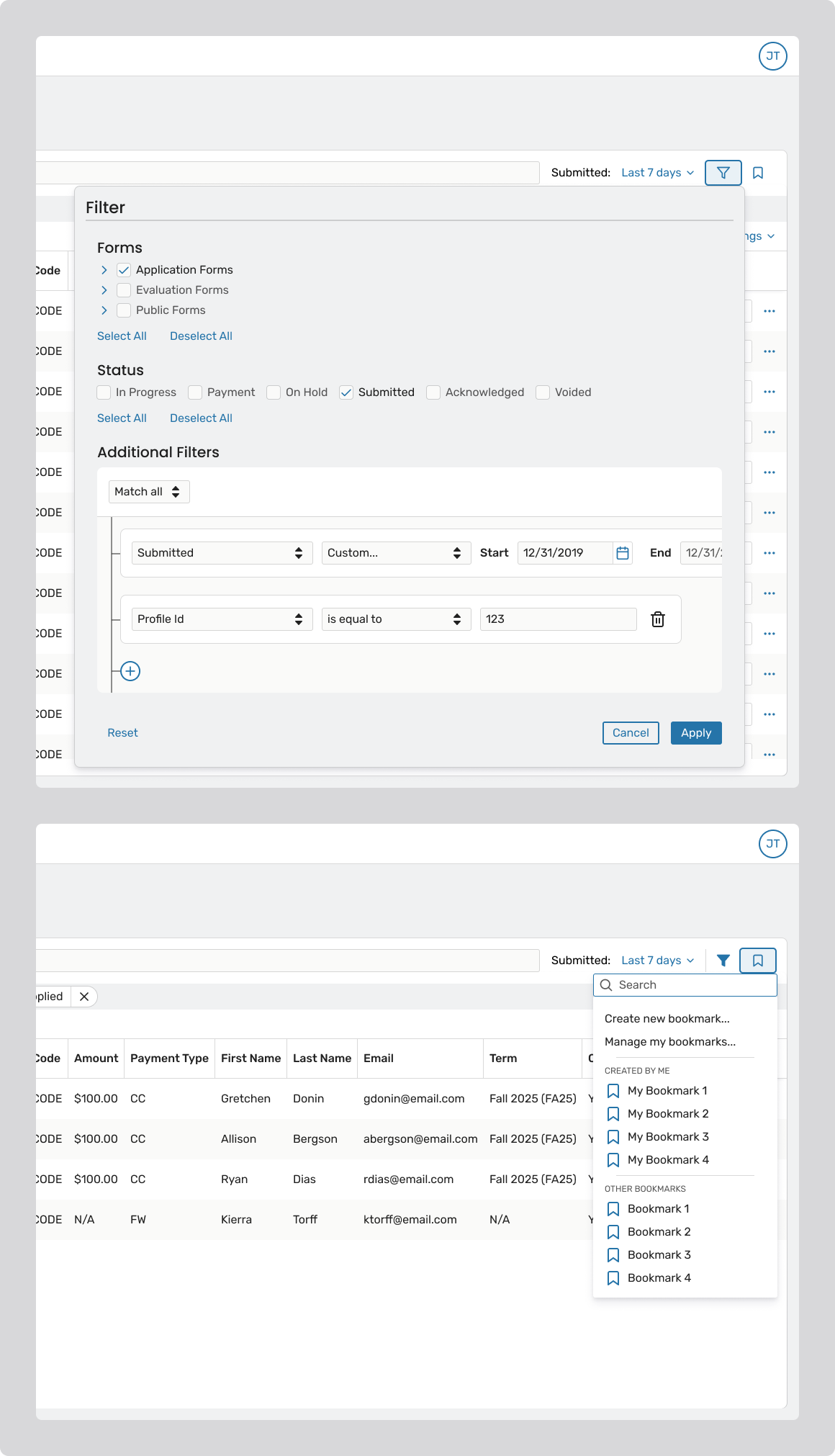 By pairing performant defaults with bookmarkable filters, the system supports both one-off investigation and ongoing, repeatable workflows, which is critical for high-volume admissions and administrative teams.