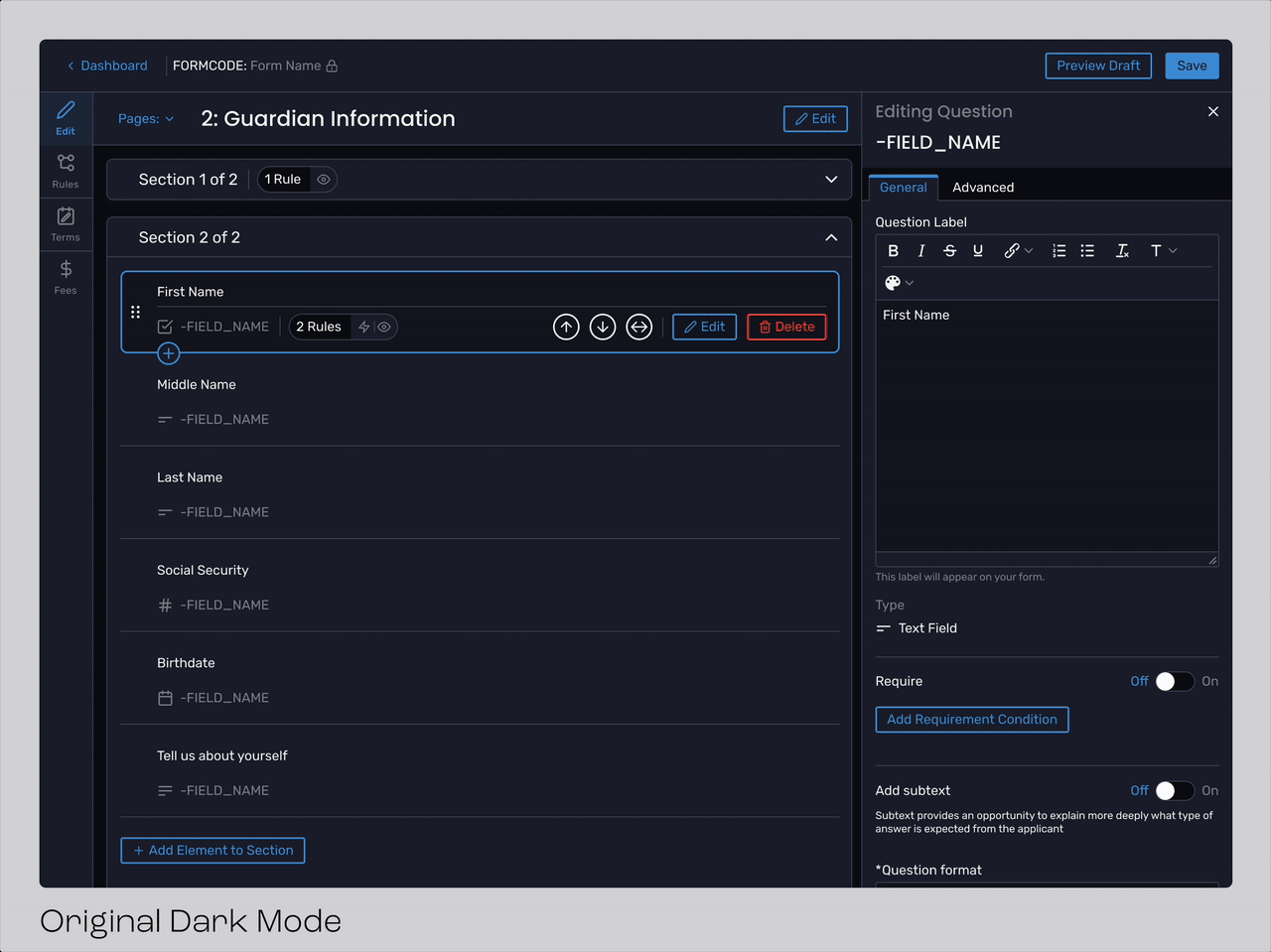 As part of this work, I also was working on a redesigned client-facing dark mode. The existing dark mode had been internal-only and lacked refinement, so I improved contrast, accessibility, and visual consistency to meet production standards.